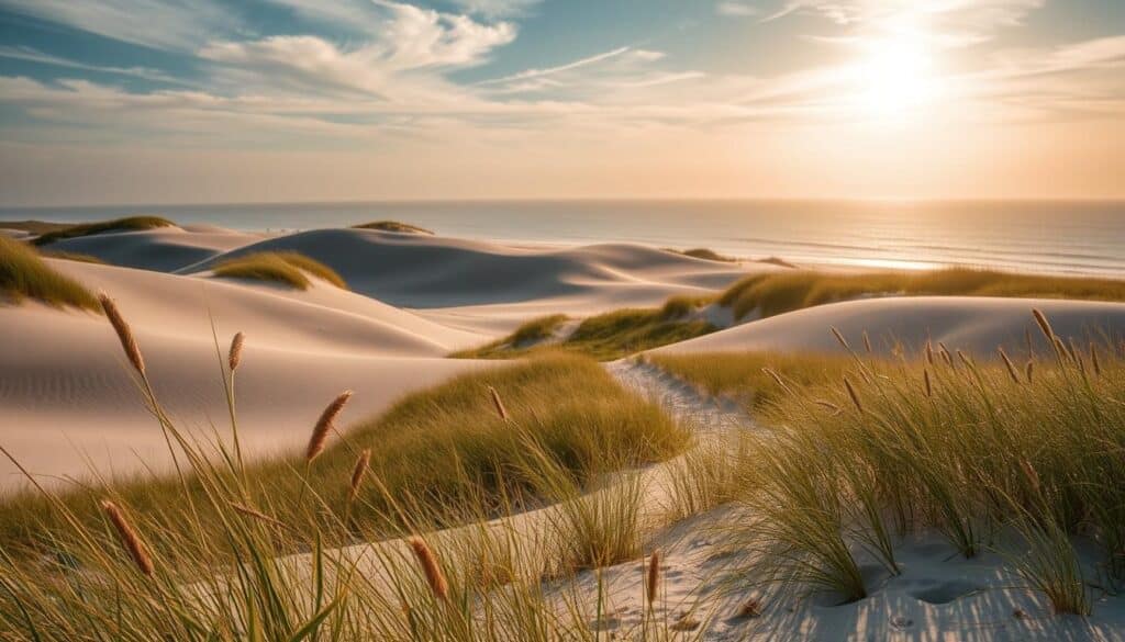 Manche Inseln überraschen mit besonderen Naturschätzen wie Küstenwäldern. Diese grünen Oasen am Meer bieten einen reizvollen Kontrast zur weiten Dünenlandschaft. Die Vielfalt der Landschaftsformen macht jeden Spaziergang zu einem neuen Erlebnis.